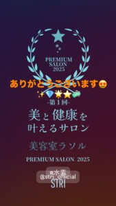 全国2000店舗の中から120店舗の中のサロンのみの厳選されたサロンのみ受賞。